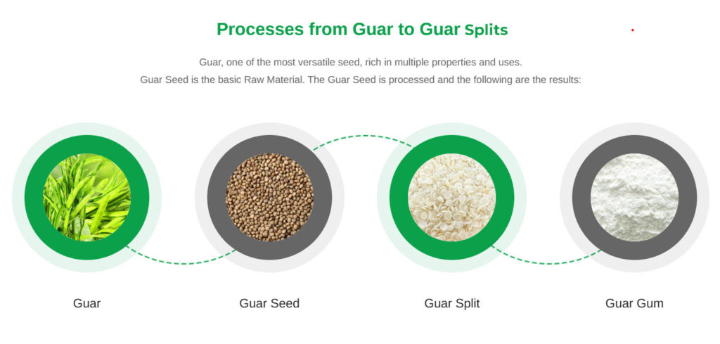 Guar Splits are the refined endosperm of guar seeds, obtained after carefully removing the husk and germ. They are the primary raw material used for manufacturing guar gum powder, which has wide-ranging applications across food, feed, pharmaceutical, oil & gas, textile, paper, and cosmetic industries.